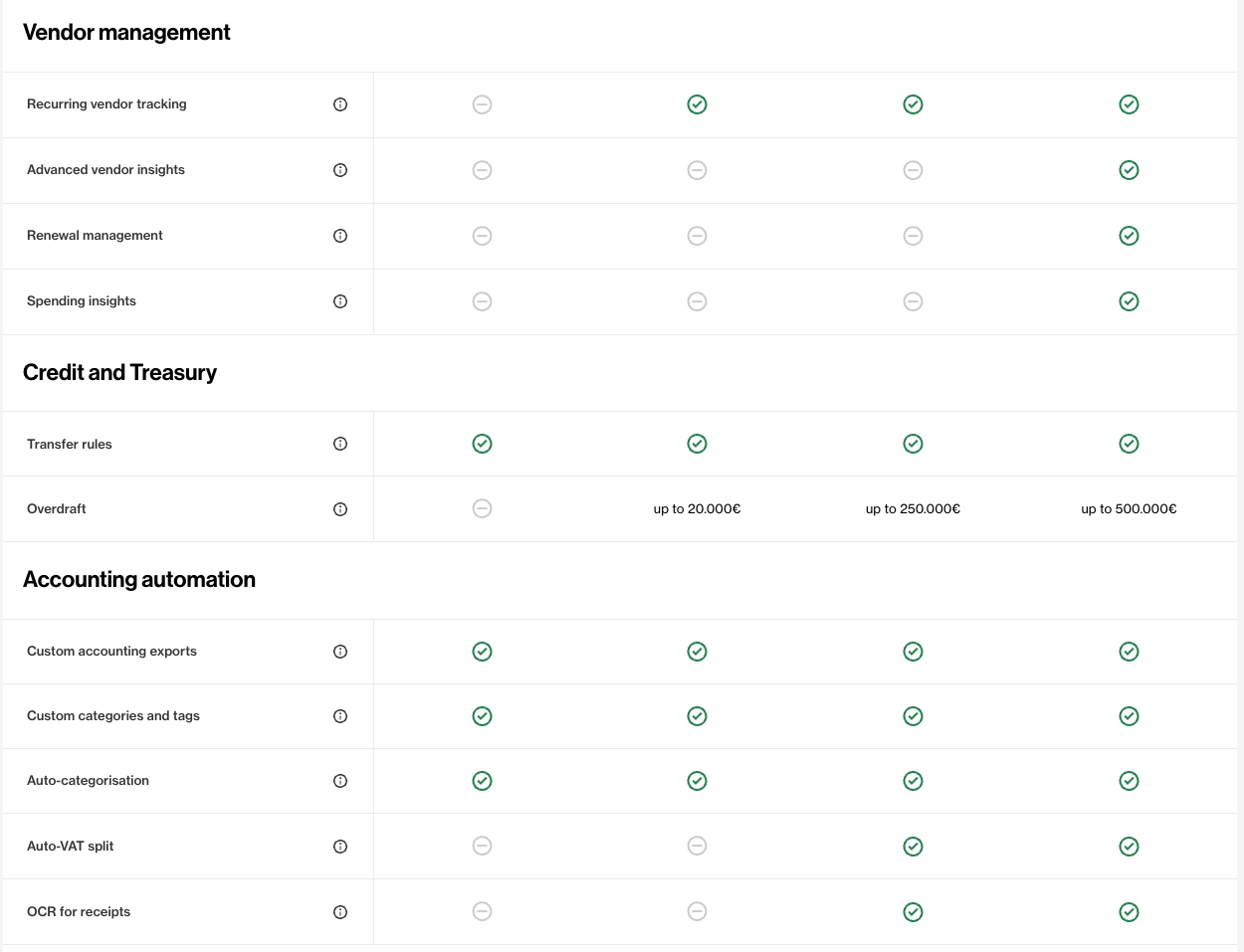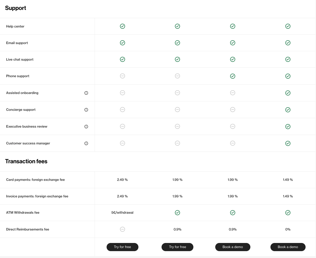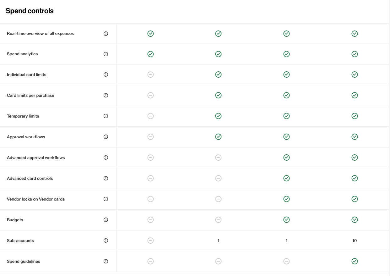 ✓ Real-time expense tracking | ✓ Essential card controls | ✓ Advanced card controls | ✓ Sub-accounts |