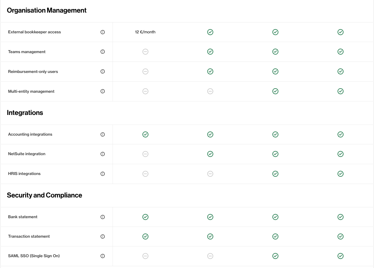 ✓ Pleo company cards (plastic/virtual) | ✓ 0,5 % cashback (on yearly plans) | ✓ 1 % cashback (on yearly plans) |