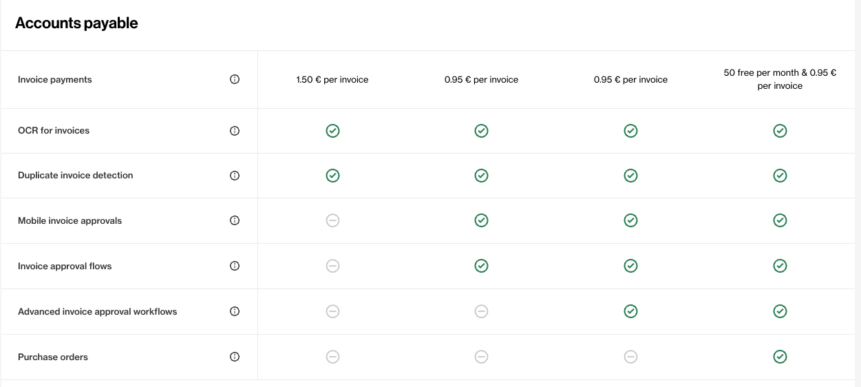 ✓ Chat and email support | ✓ Recurring vendor tracking | ✓ Chat, email and phone support | ✓ Assisted onboarding |