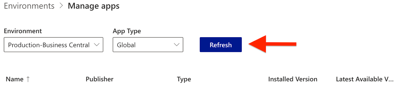 - Click on the Business Central Environment in which the app is installed
